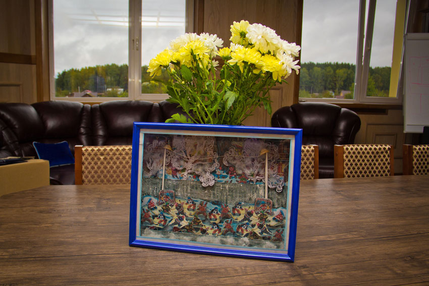 Ребята передали в дар президенту объединения Владимиру Ивановичу Супруну картину, созданную своими руками из поделочных материалов.