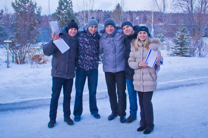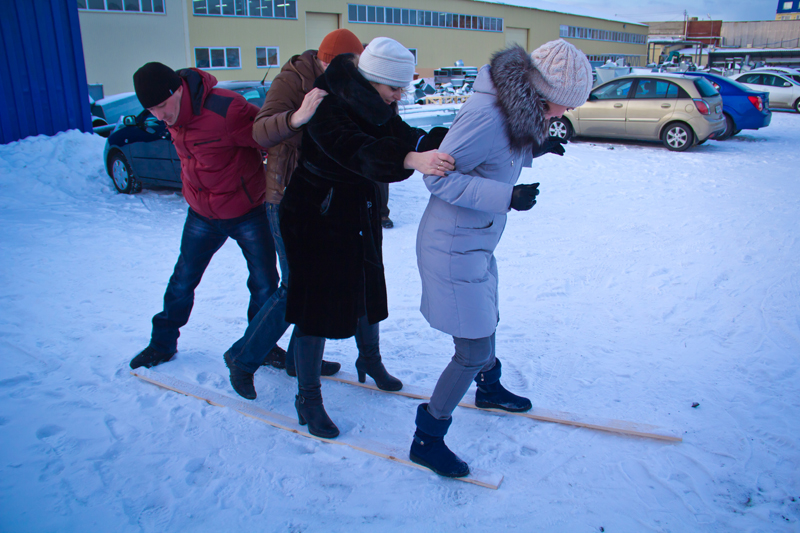 На бодрящем морозе пять сформированных согласно случайной выборке команд соревновались в быстроте бега гуськом, скорости ориентирования на обширной территории завода и площадях заводских корпусов, в знании мельчайших деталей всей двадцатипятилетней истории становления АМС-МЗМО, а также просто в искусстве добежать до места назначения и не упасть по дороге – ночью накануне проведения мероприятия ударил мороз.