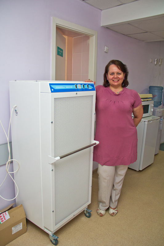 «После химиотерапии у всех детей понижено количество лейкоцитов. И, как следствие, у всех угроза аутоинфицирования, гнойного заражения крови. Опасность представляет и инфекция, которая может находиться в воздухе внутри больницы. Часто это микрофлора, уже устойчивая к антибиотикам. Передвижную установку теперь мы можем устанавливать в любой палате, где будет находиться ослабленный ребенок, и аппарат будет стерилизовать воздух. Мы очень благодарны такому подарку», − говорит руководитель центра Ирина Спичак, заместитель главного врача ЧОДКБ по детской онкологии и гематологии, доктор медицинских наук.