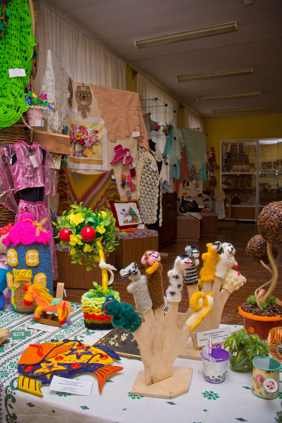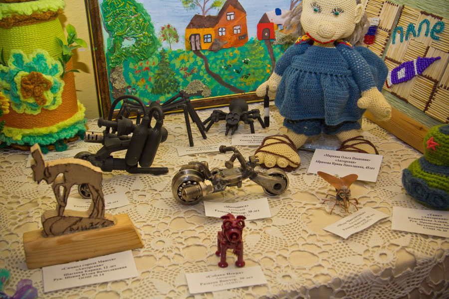Настоящим украшением экспозиции стали вязаные игрушки и ажурные шали контролера ОТК Натальи Власовой. Специалист планово-диспетчерского отдела Ирина Рыкова, как и в прошлом году, представила наибольшее количество экспонатов. Ирина также создает игрушки своими руками. Обе мастерицы создают обаятельных персонажей, каждый из которых имеет свою интересную историю.