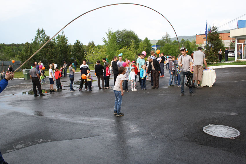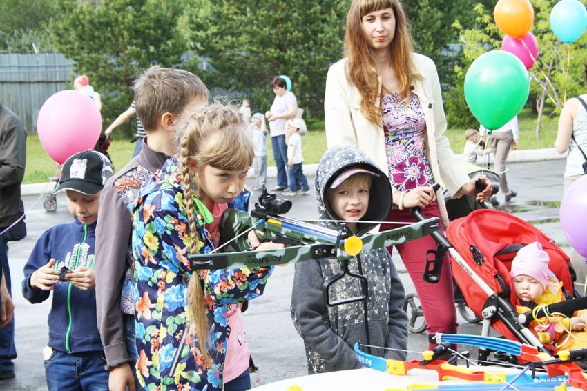 В течении вечера ребят развлекали веселые ведущие и артисты. Каждый желающий мог проверить свои силы в стрельбе из арбалета, катании на гироскутере, прыжках на батуте и огромной скакалке.