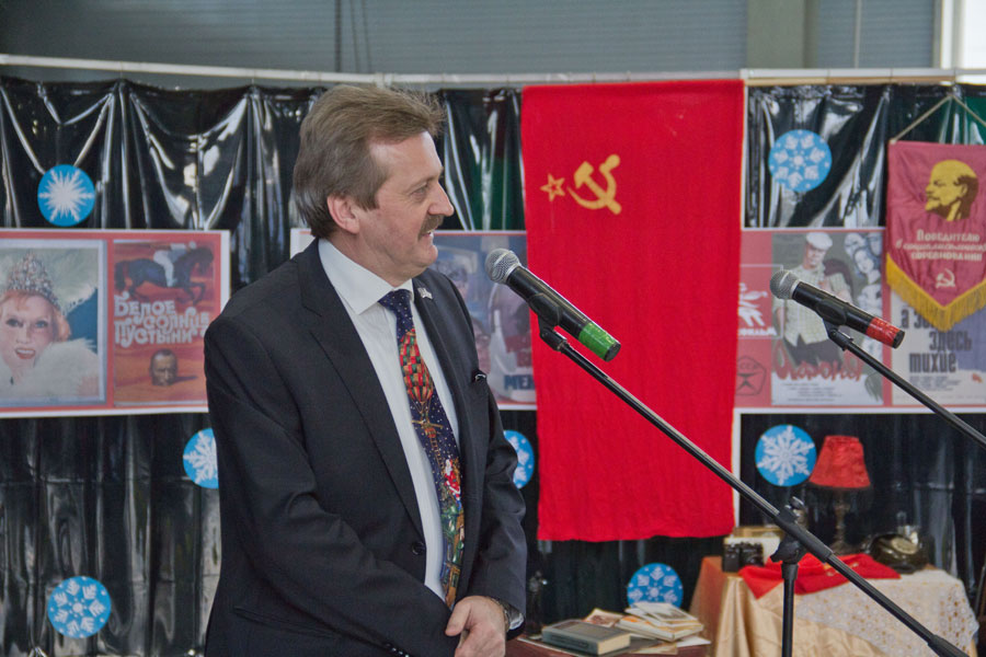 Образ ведущего церемонии, музыкальное сопровождение и обращение "товарищи" подчеркивали ностальгический дух ушедшей эпохи.