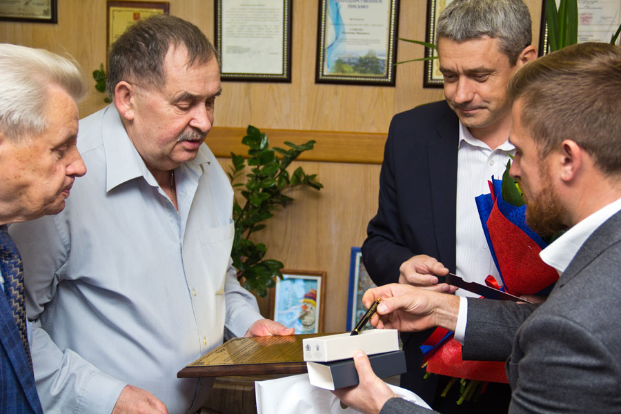 Руководители города Миасса вручили юбиляру Почетную грамоту Собрания депутатов Миасского городского округа за многолетний безупречный труд, высокий профессионализм, активное участие в общественной жизни города и пожелали здоровья и долголетия, новых продуктивных идей и перспективных проектов, финансовой стабильности и процветания предприятиям и их сотрудникам.