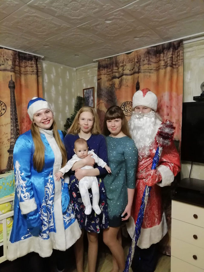 Стало доброй традицией поздравлять детей из многодетных семей работников завода непосредственно у них дома. И это не просто поздравление, а визит Деда Мороза и Снегурочки с подарками и веселым настроением. В роли сказочных персонажей выступили молодые специалисты предприятия Семен Юдин и Ангелина Лузина. Всего многодетных семей, родители которых работают в объединении – 20, в них от трех до шести детей.
