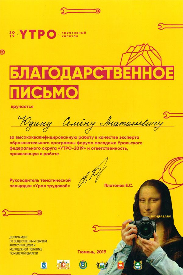 В программе Форума - образовательные лекции, воркшопы и мастер-классы, а также обмен идеями на круглых столах и участие в конкурсе грантов. Молодежные лидеры обсудили перспективы развития юнармейского движения в УрФО, поговорили о добровольческих проектах и международных практиках, урбанистике и экологических проблемах, развеяли мифы о политике, изучали темы цифровизации и глобализации, бизнес-коммуникаций и даже театральное мастерство на примере мюзикла. Вся работа проходила на 12 тематических площадках.