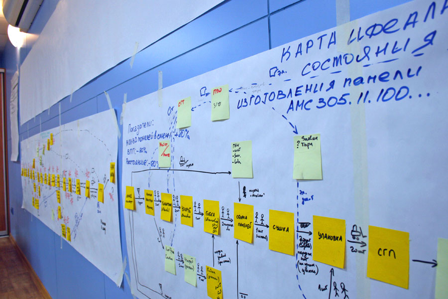 В качестве пилотного производственного потока для создания участка-образца были выбраны участки изготовления дверей и стеновых панелей. На выбранных участках сотрудники АМС-МЗМО совместно с экспертами Федерального центра компетенций будут оптимизировать текущий производственный процесс: проводить картирование потока (графически отображать его текущее и целевое состояние), выявлять проблемные места и находить решения по их устранению, проводить хронометраж и внедрять улучшения. В дальнейшем результаты, достигнутые на эталонных участках, будут транслироваться на другие подразделения завода.