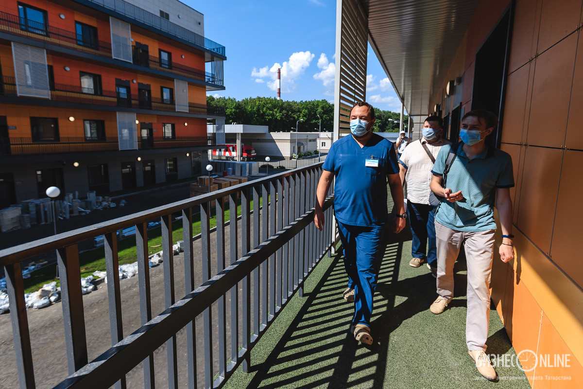 Строительство нового корпуса велось в максимально сжатые сроки. В конце апреля строители приступили к работе, а уже сегодня главный COVID- госпиталь Республики Татарстан почти готов к приму пациентов. Само здание четырехэтажное, общая площадь — более 15 тыс. кв. метров. В отличие от временных инфекционных госпиталей, он построен капитально. Корпус рассчитан на 232 койки с возможностью увеличения до 504.