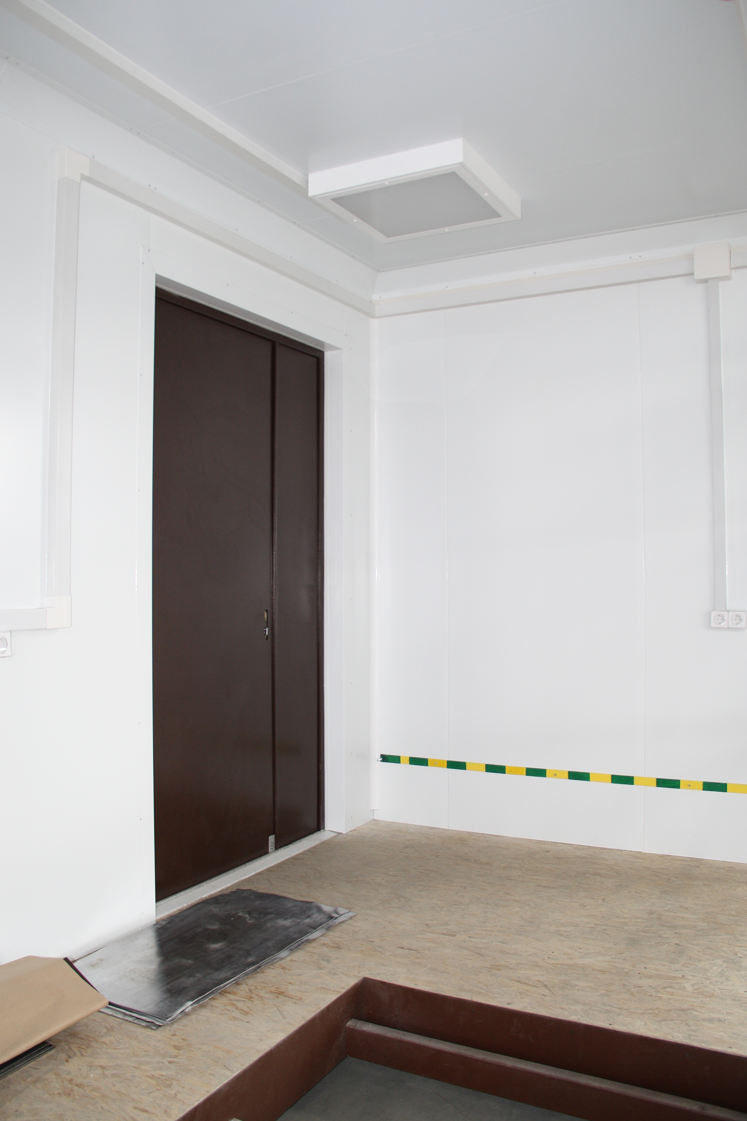 Метод компьютерной томографии основан на действии рентгеновского излучения, поэтому в процедурном помещении необходима защита от лучевой нагрузки. Внутри всех ограждающих конструкций процедурной применяется свинцовый лист, позволяющий защитить персонал от воздействия радиационного излучения.