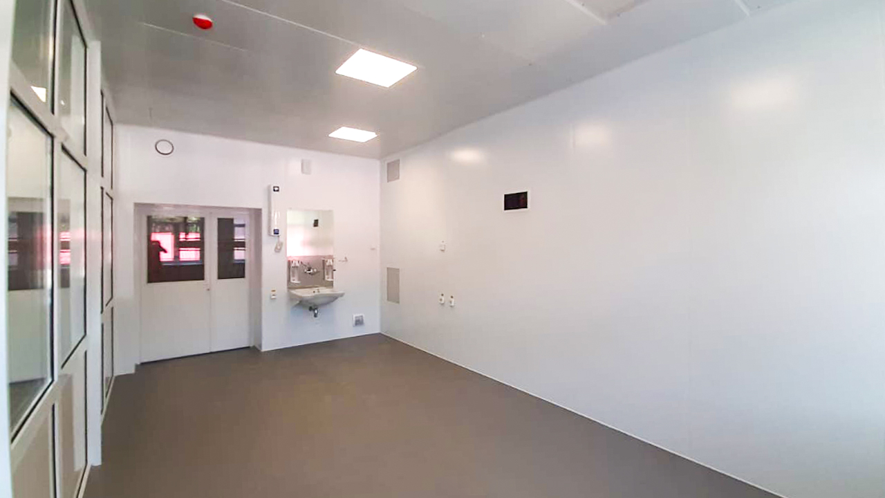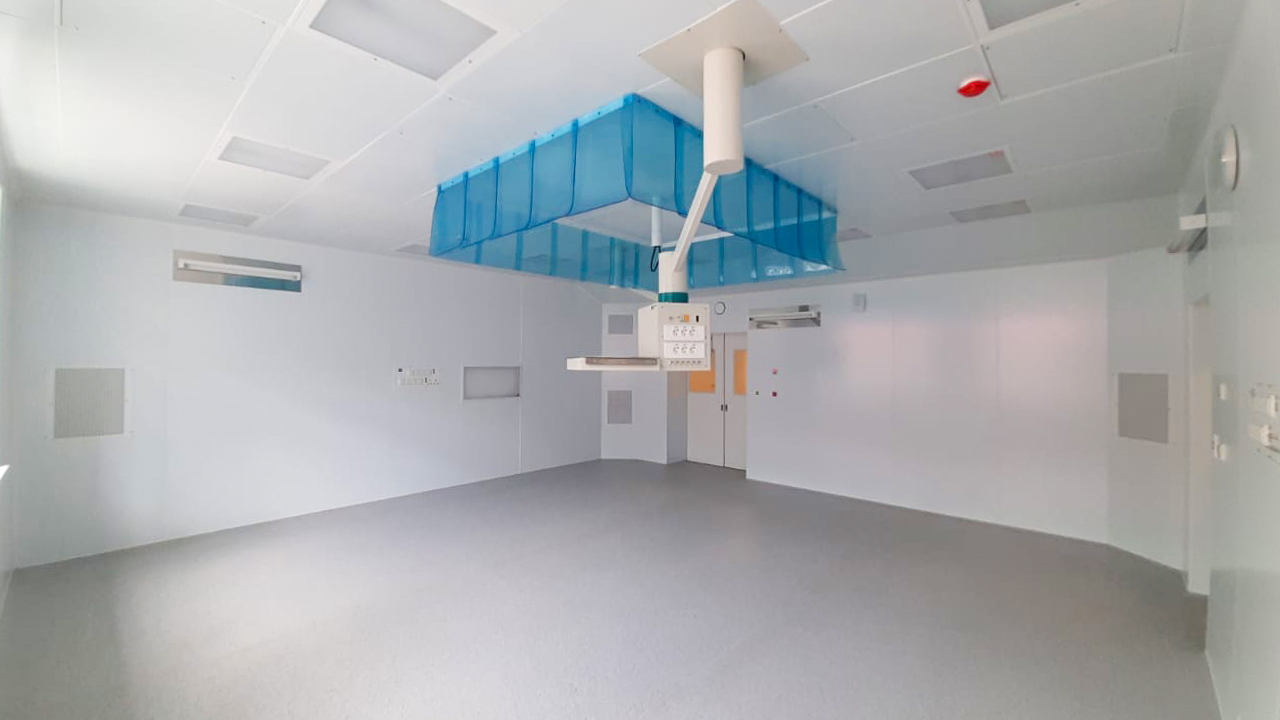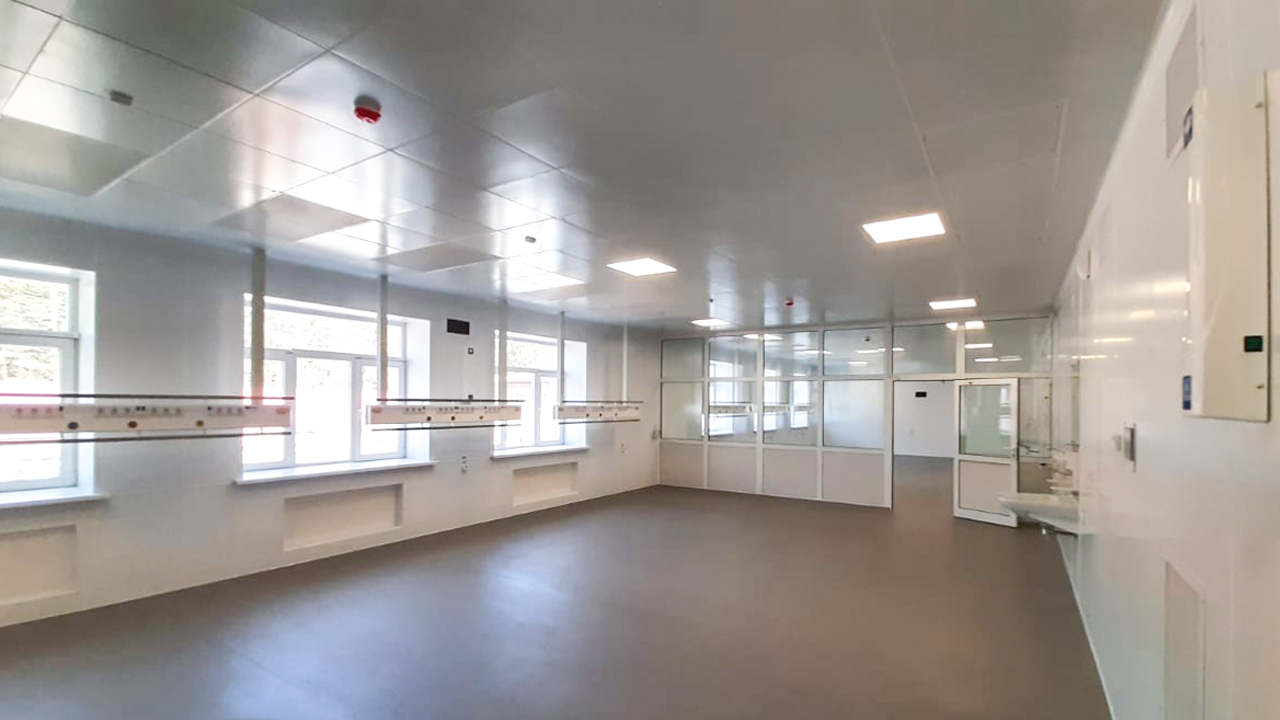 Состав комплекса чистых помещений: операционный блок на 2 операционные; палаты отделения реанимации и интенсивной терапии. Общая площадь чистых помещений: 275 кв. метров.