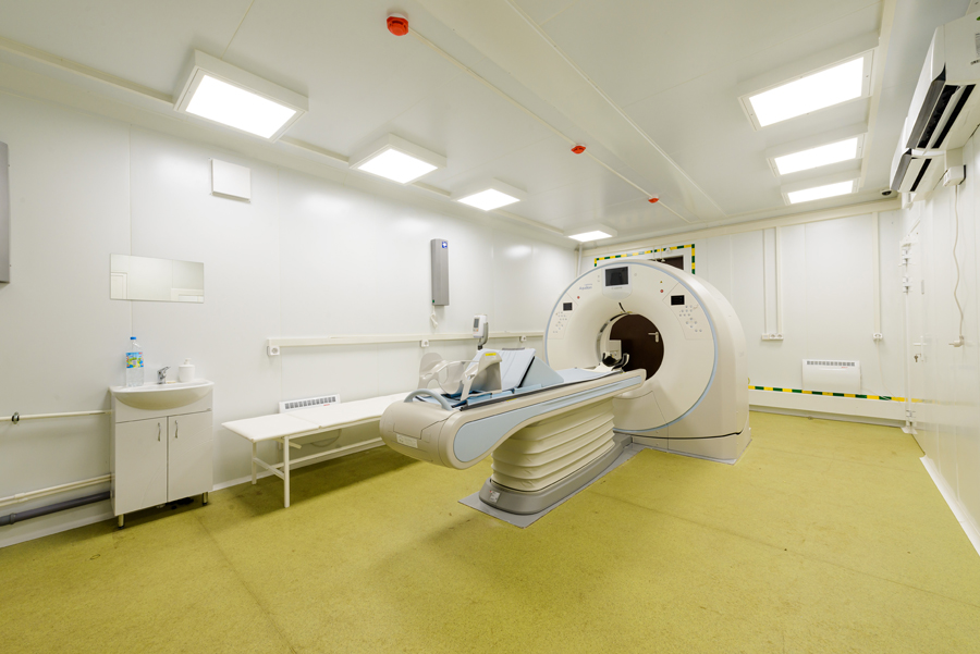 В рамках проекта создано пять зданий высокой заводской готовности. Главная особенность новых модулей – рентгенозащитные ограждающие конструкции со свинцовыми экранами. По проекту в каждом модульном здании установлен компьютерный томограф для проведения обследований населения, в том числе − на обнаружение симптомов и последствий Ковид-19.