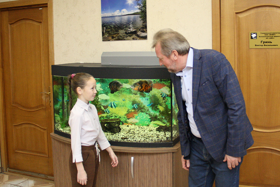 Накануне новогодних праздников Вероника вместе с мамой побывала на предприятии. Руководитель Миасского завода медицинского оборудования Виктор Гринь поздравил Веронику и её семью с наступающим Новым годом и пожелал ей успехов в учебе и творчестве. Вероника и её мама Алия Макерова поблагодарили руководство предприятия и коллектив завода за подарок.