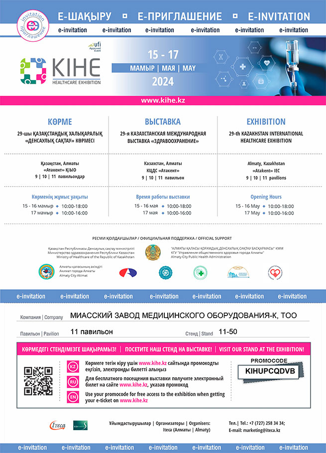 В мае ткущего года «МЗМО-К» примет участие в медицинской выставке в Алматы. Выставка «Здравоохранение» состоится с 15 по 17 мая в КЦДС «Атакент».