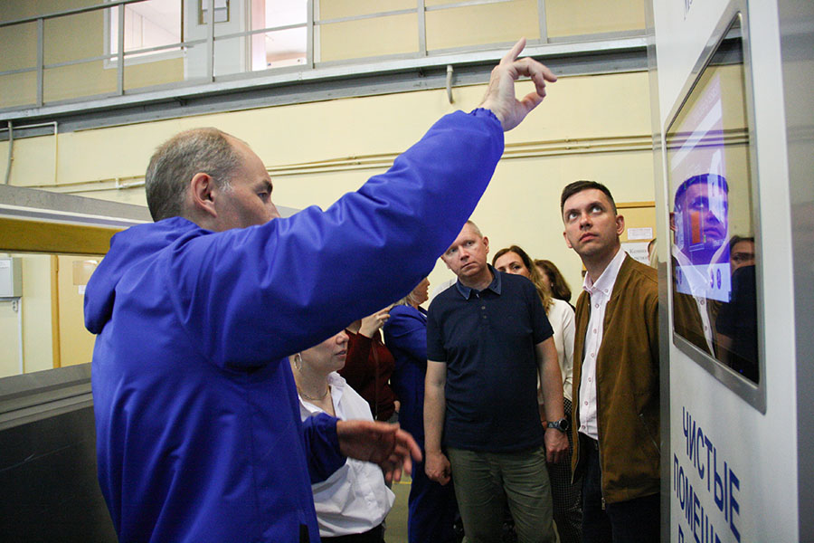 Маршрут по производственному комплексу включал сборочно-монтажную линию приборного производства, где создаются современные российские медицинские консоли жизнеобеспечения, востребованные в медицинских организациях.