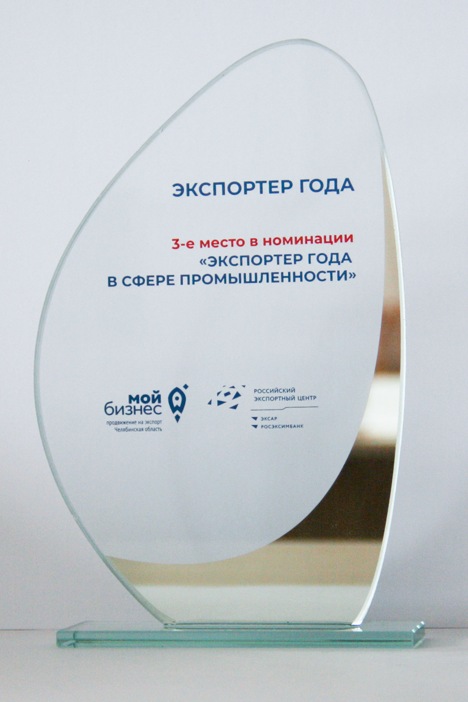По итогам регионального конкурса «Экспортер года Челябинской области» среди субъектов малого и среднего предпринимательства завод занял третье место в номинации «Экспортер года в сфере промышленности».