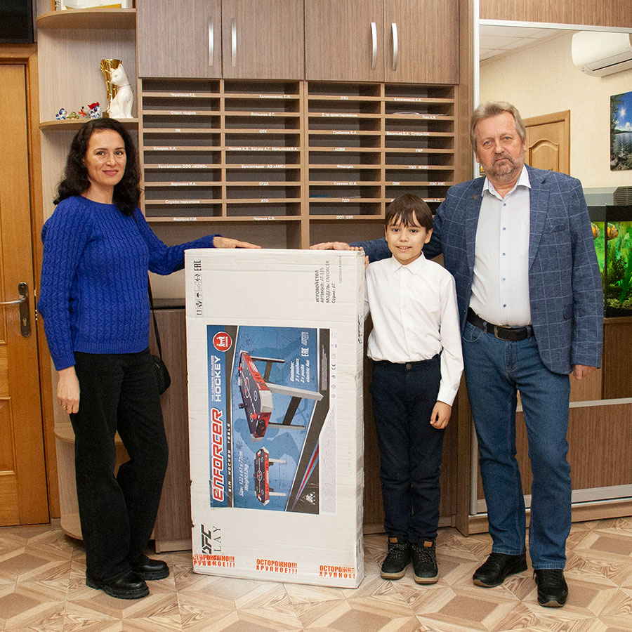 В этом году подарок от завода получил 10-летний Кирилл из Миасса. В своем письме Деду Морозу он написал, что желает получить в подарок на Новый год настольный аэрохоккей, чтобы соревноваться вместе с друзьями и весело проводить время. Кирилл отличник учебе, дополнительно учится в музыкальной школе, ходит в бассейн, играет в шахматы и занимает призовые места в конкурсах и соревнованиях.