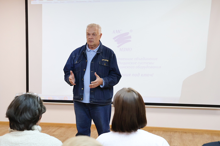 Открыл встречу заместитель генерального директора МЗМО Николай Федоров. Он рассказал о том, что целевой набор абитуриентов проводится для предприятия впервые. Масштабы работы предприятия постоянно растут, поэтому объединению требуется молодые кадры по инженерным специальностям. Он подчеркнул, что набор осуществляется в соответствии с постановлением Правительства Российской Федерации от 27 апреля 2024 г. N 555 «О целевом обучении по образовательным программам среднего профессионального и высшего образования» по семи специальностям и направлениям. Гости познакомились с презентацией о деятельности объединения «АМС-МЗМО».