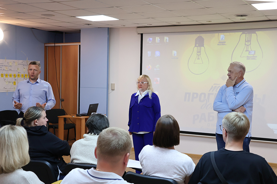 Директор по проектированию Дмитрий Ткаченко и заместитель директора по проектированию Александр Толстяков рассказали гостям о технических возможностях проектного подразделения предприятия и о том, как организована работа по проектированию комплексов чистых помещений. Дмитрий Ткаченко рассказал, что на время прохождения производственных практик и после окончания вуза за каждым молодым специалистом закрепляется наставник, который поможет приступить к самостоятельной работе. Полностью готовых специалистов по проектированию комплексов чистых помещений не выпускает ни один вуз, поэтому подготовку к работе специалисты проходят на самом предприятии.